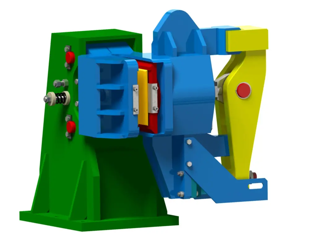 Speciální disková brzda, konstruována jako páková sestava, je tvořena vlastním tělesem brzdy, čelistmi s brzdovým obložením, sestavou pružin, pákovým systémem, přímočarým hydromotorem a snímací jednotkou stavu brzdy (Zabrzděno – Odbrzděno).
