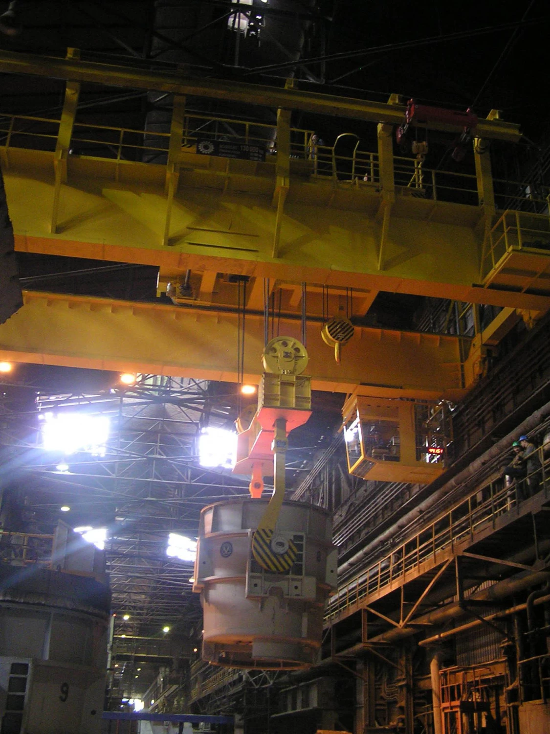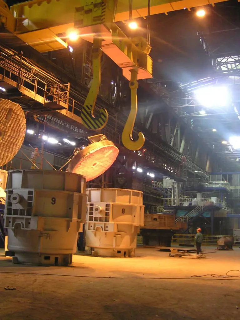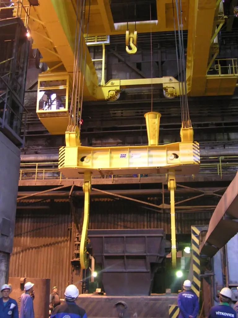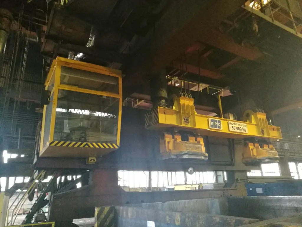 Dále je to celá škála traverz pro hutní provozy, kde je nutno manipulovat s tekutým kovem, rozměrnými a někdy i horkými (až 800°C) produkty apod. Sem patří licí traverzy, jejichž nosnost se většinou pohybuje ve stovkách tun. Traverzy jsou osazeny lamelovými háky pro zavěšení pánve s tekutým kovem a mohou být vybaveny vážícím systémem.