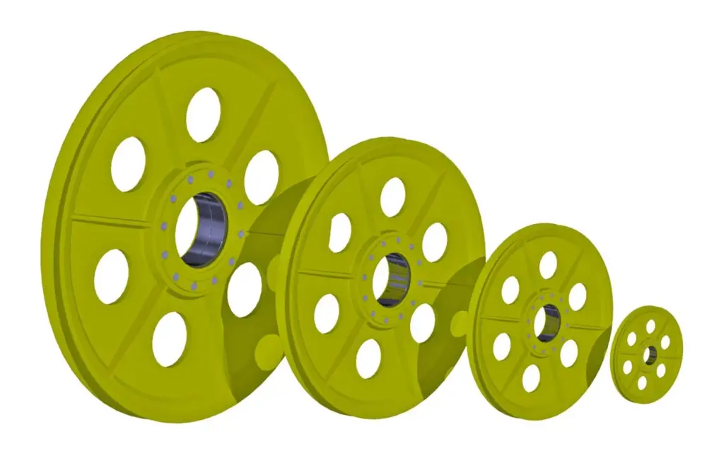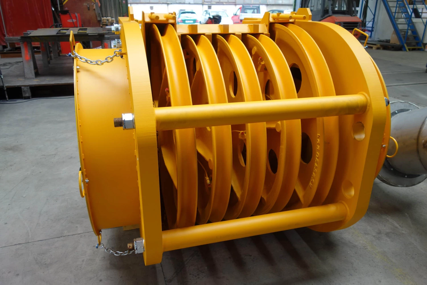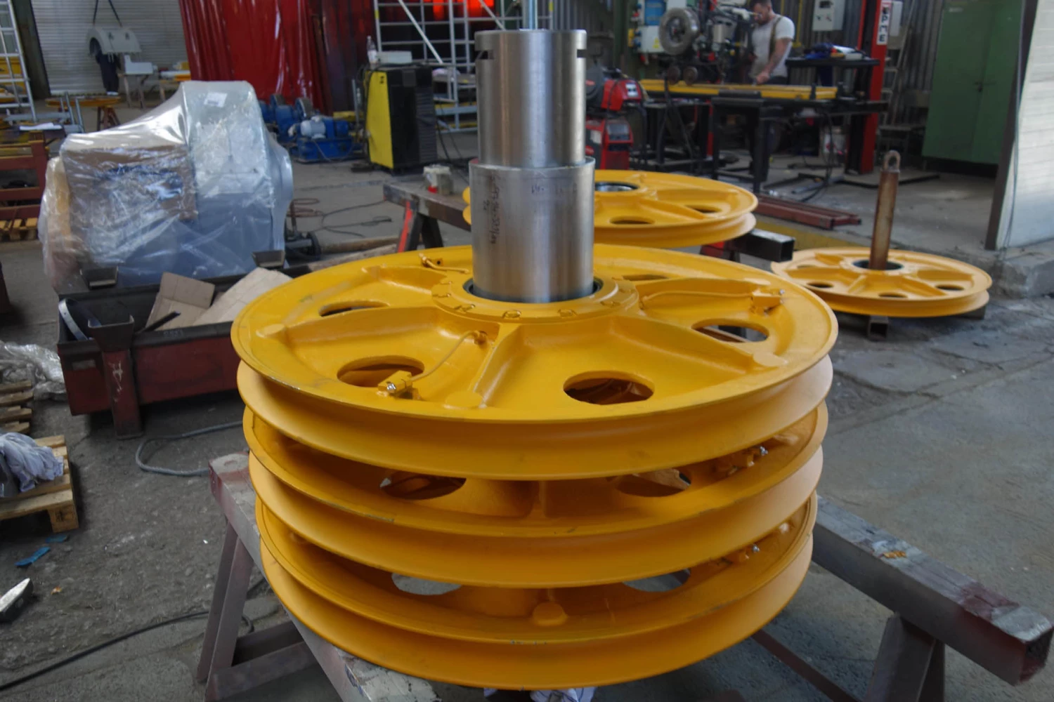 Po hlavních nosnících pojíždí jeřábová kočka, případně je pod nimi podvěšena. Jeřáb pojíždí po ocelových kolejnicích uchycených do betonového tělesa jeřábové dráhy, zabudované v terénu. Elektrické napájení (hlavní trolej) je často řešeno kabelem na kabelovém bubnu, případně trolejí v souběžném kanálu. Ovládání jeřábu je z kabiny, dálkovým ovládáním, případně zavěšeným panelem.