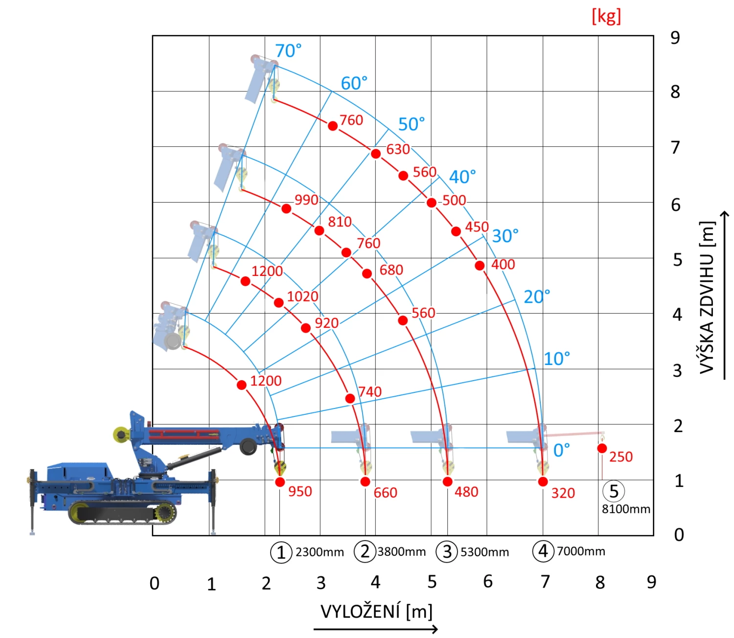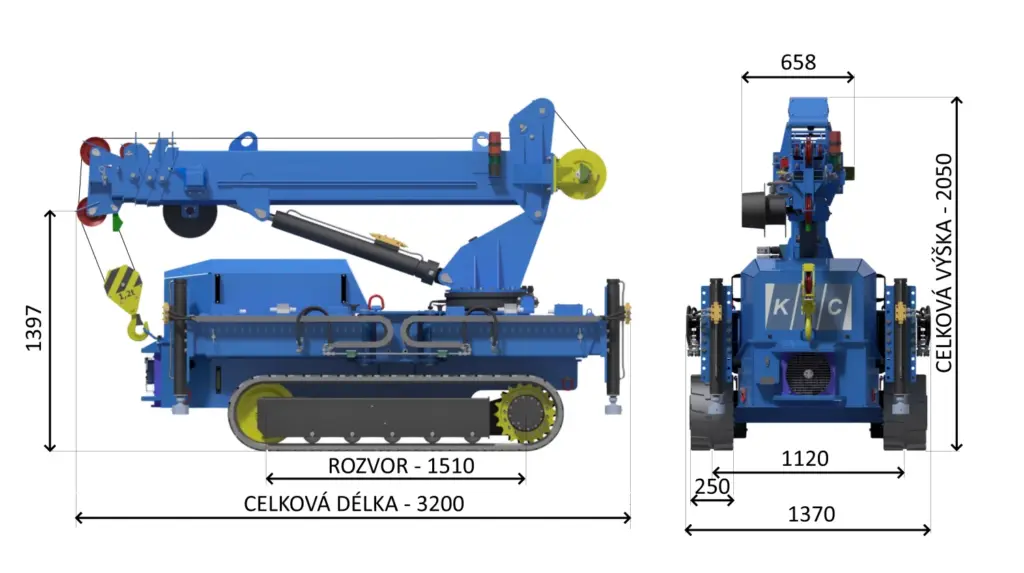 Jedná se o mobilní jeřáb výložníkového typu, který pojíždí na pásovém podvozku. Jeřáb je v rámci pracovního prostoru samohybný a pracuje s břemeny o definované nosnosti. Ovládání pracovních pohybů jeřábu je pomocí rádiového dálkového ovládání.