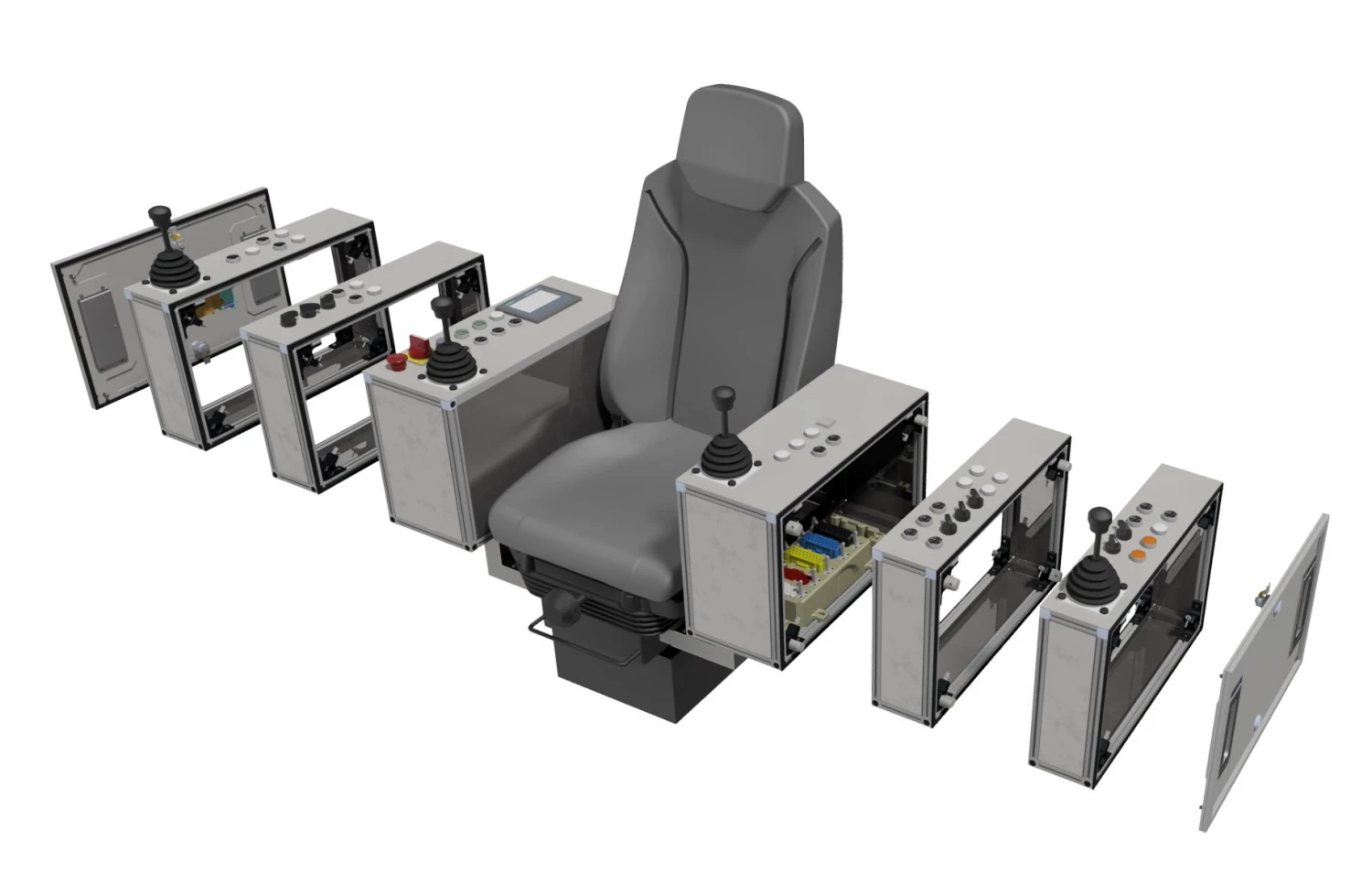 Ovládací pulty křesla segmentového provedení umožňují libovolnou konfiguraci ovládacích prvků a jejich rozložení v rámci jednotlivých segmentů.