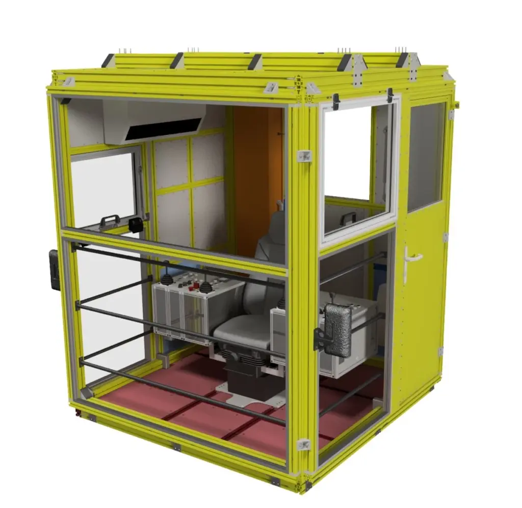 Kabina může být vybavena klimatizací, topným tělesem, led reflektory, průmyslovou kamerou a mnoho dalšími prvky dle přání zákazníka.